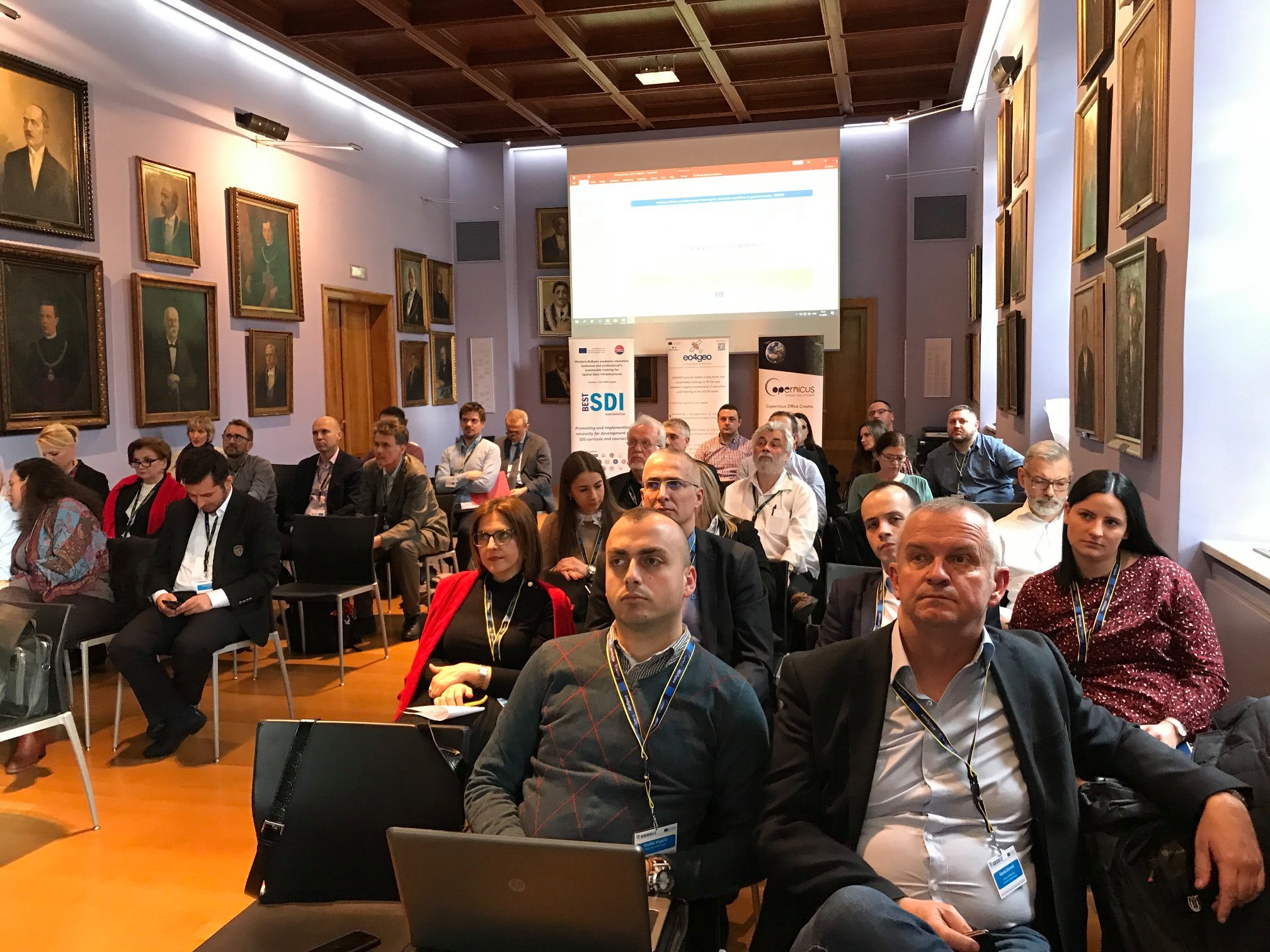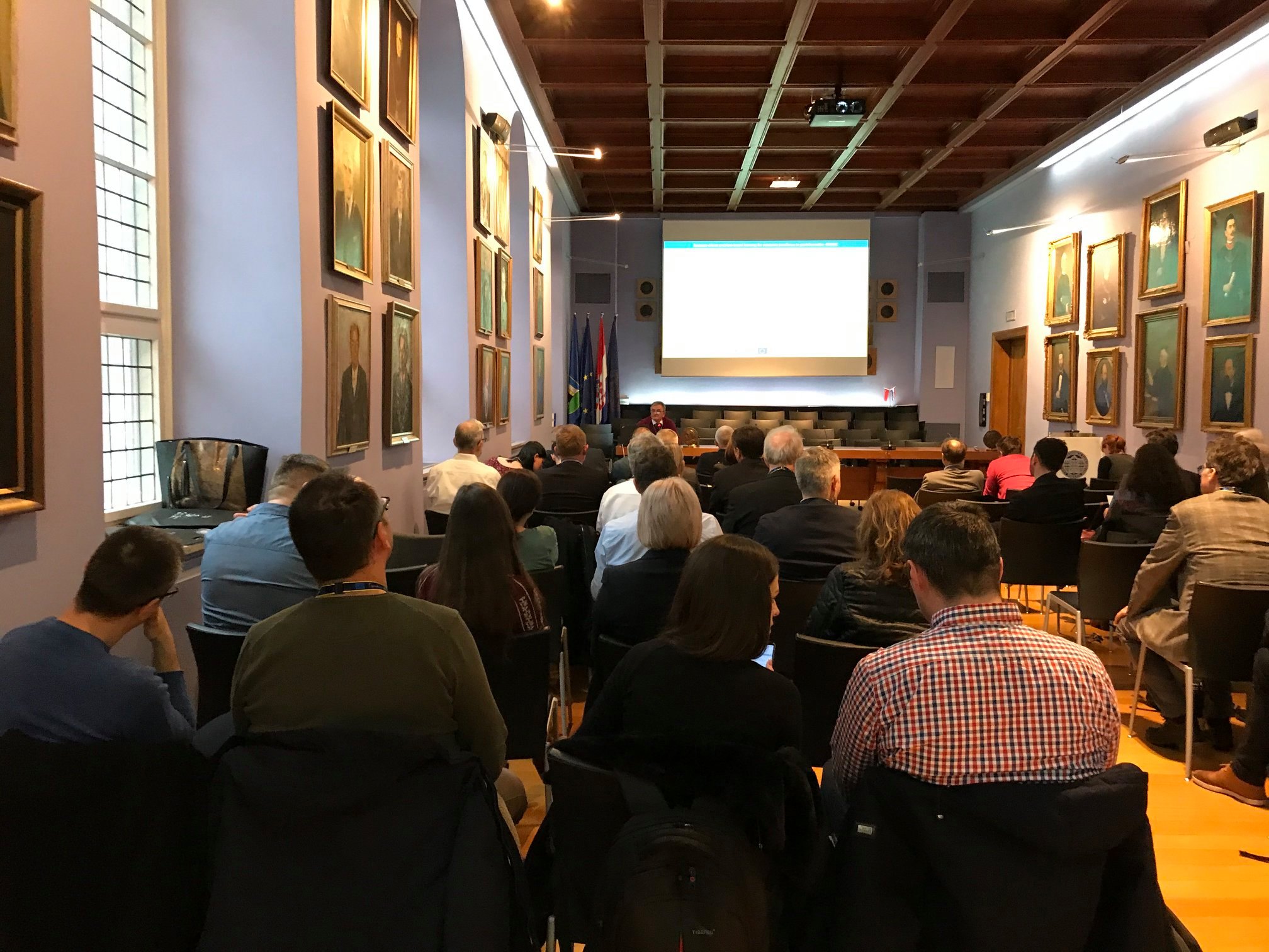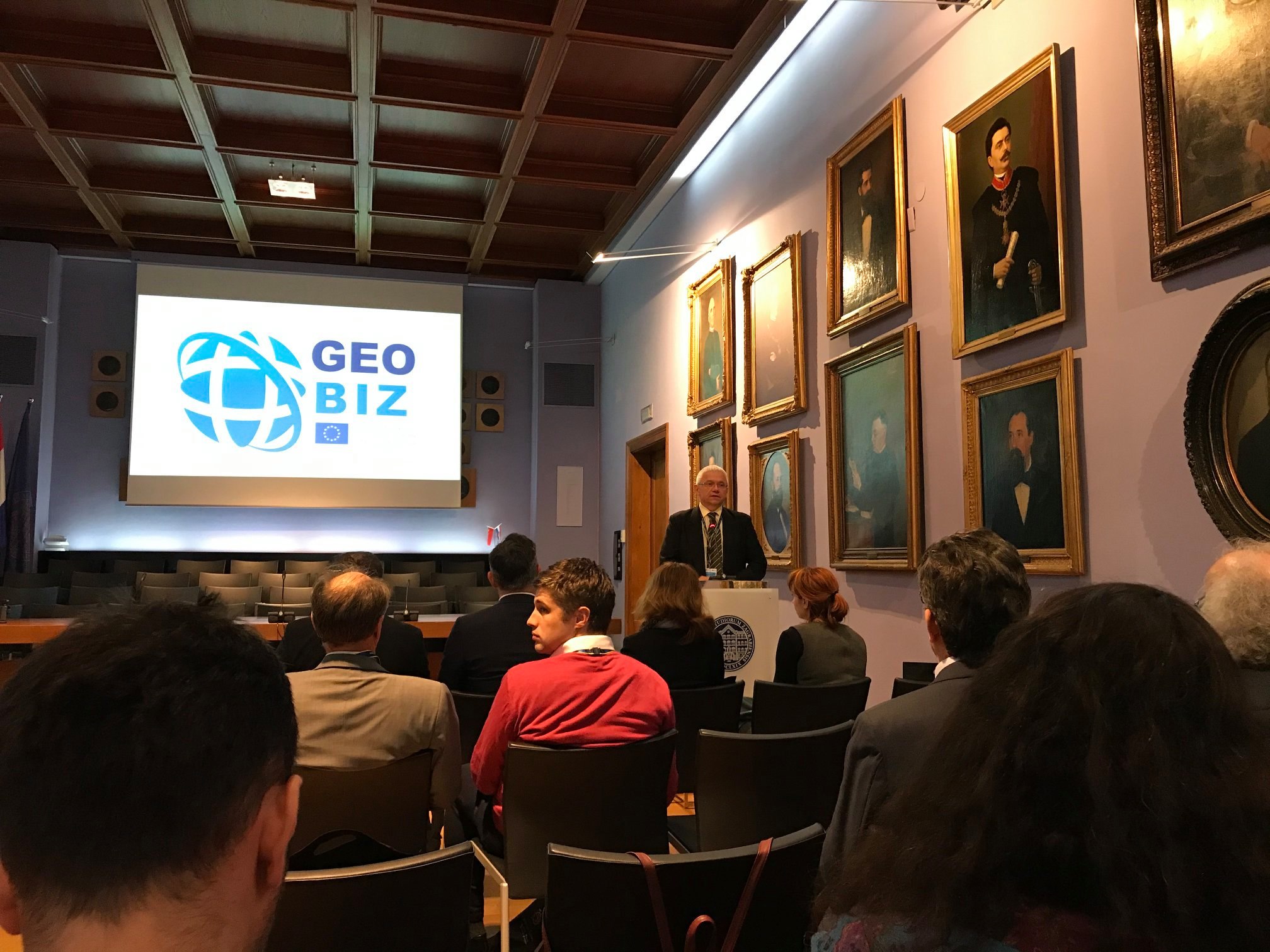 The official start of Erasmus + KA2 Capacity Building in Higher Education project GEOBIZ was November 15th 2019, but it was inaugurated on February 4th , 2020 in the Rectorate Aula of the University of Zagreb within the frame of the first project workshop – kick-off meeting. More than frothy project consortia participants together with the representatives of the University in Zagreb, Croatian Agency for Mobility and European Union Programs (AMPEU) and other local and international entrepreneurs attended the project launch and after the welcome speeches of the guests of honor, Prof. Damir Boras, PhD (Rector of the University of Zagreb), Antonija Gladović, M.Sc. (Director of the Agency for Mobility and EU Programmes, AMPEU) and Prof. Almin Đapo, PhD (Dean of the Faculty of Geodesy) they received the first information about the project from the project coordinator, Prof Željko Bačić, PhD, from the Faculty of Geodesy, University in Zagreb.